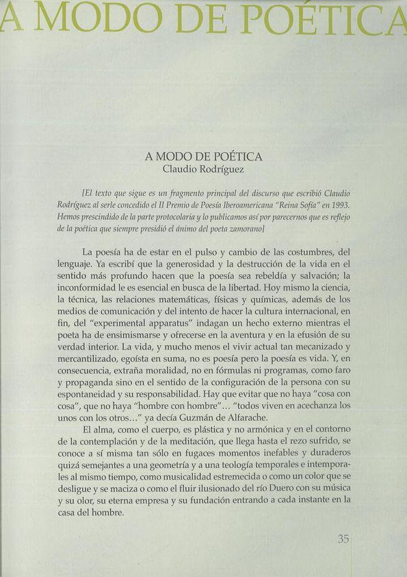 - Título: A modo de poética / Claudio Rodríguez (Formato PDF)