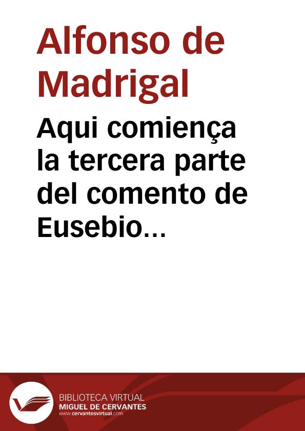 Aqui comiença la tercera parte del comento de Eusebio [del tostado]