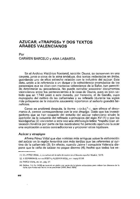 - Título: Azúcar, «trapigs» y dos textos árabes valencianos / Carmen Barceló y Ana Labarta (Formato PDF)