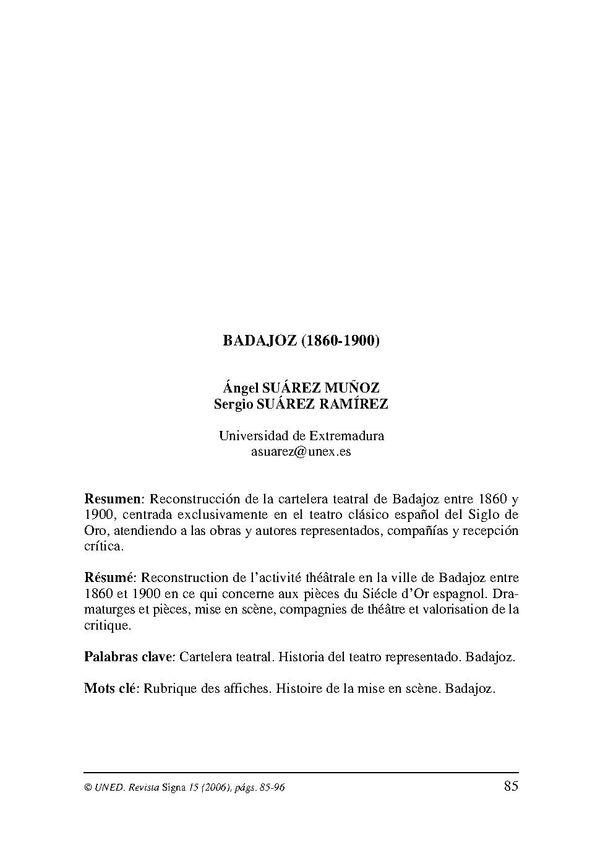 - Título: Badajoz (1860-1900) / Ángel Suárez Muñoz y Sergio Suárez Ramírez (Formato PDF)