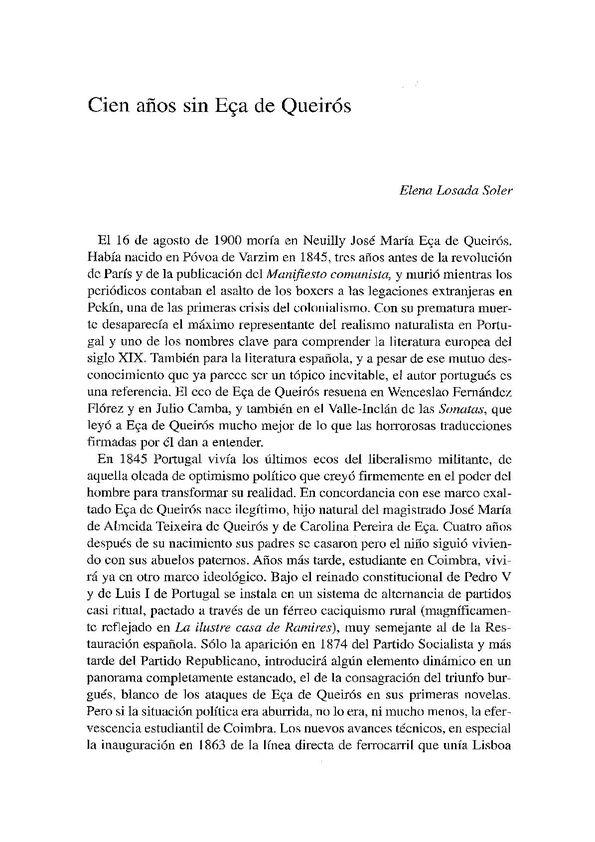 - Título: Cien años sin Eça de Queirós / Elena Losada Soler (Formato PDF)