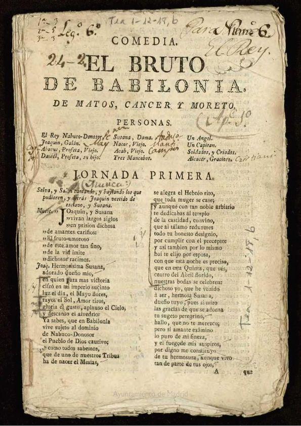 - Título: Comedia, El bruto de Babilonia / de Matos, Cancer y Moreto (Formato PDF)