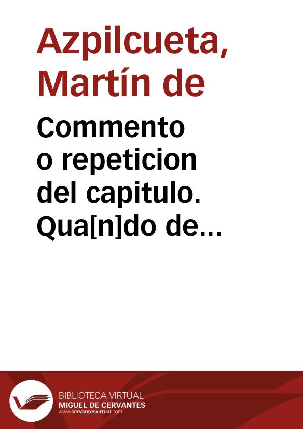 Commento o repeticion del capitulo. Qua[n]do de consecratione distin. I / compuesto y de nueuo reuisto y eme[n]dado por ... Martin de Azpilcueta ...; en el qual de rayz se trata dela [sic] oracion, horas canonicas, y otros officios diuinos ...