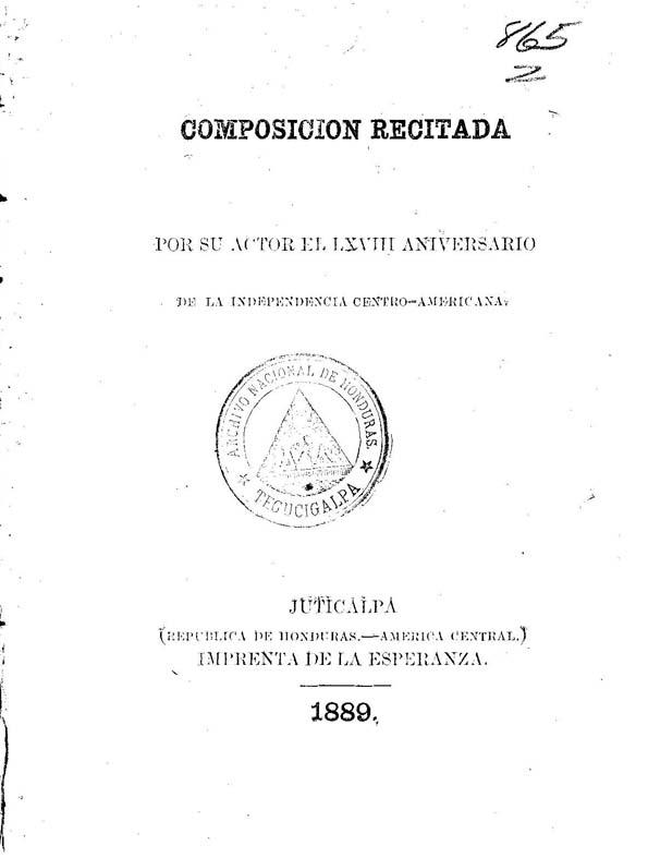 - Título: Composición recitada / por su autor el LXVIII Aniversario de la Independencia Centro-Americana (Formato PDF)