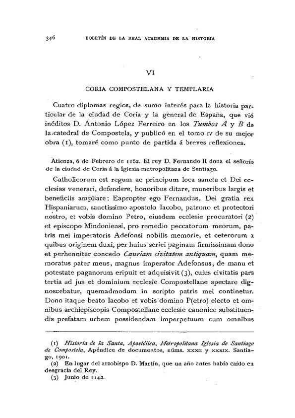 Coria compostelana y templaria / Fidel Fita