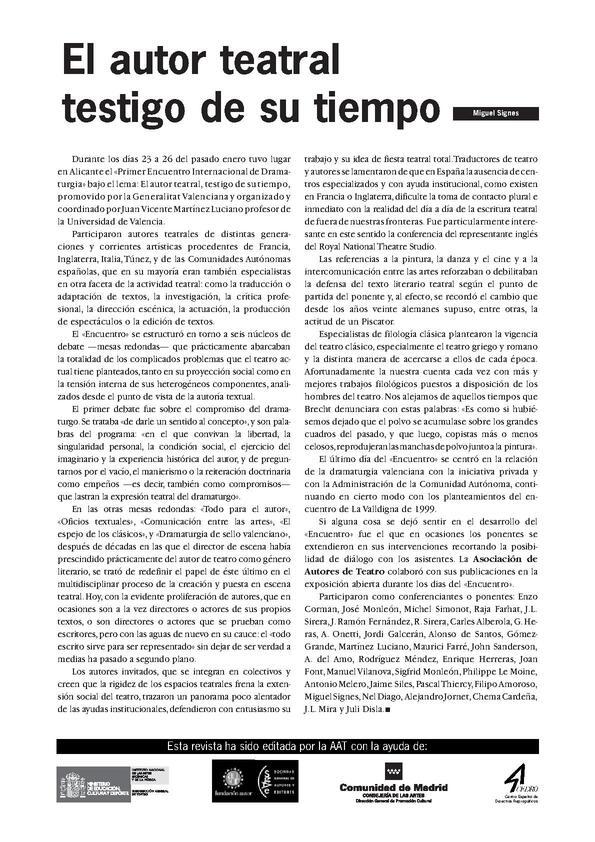 - Título: El autor teatral testigo de su tiempo / Miguel Signes (Formato PDF)