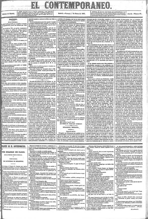 - Título: El Contemporáneo. Año II, núm. 60, viernes 1 de marzo de 1861 (en Formato HTML)