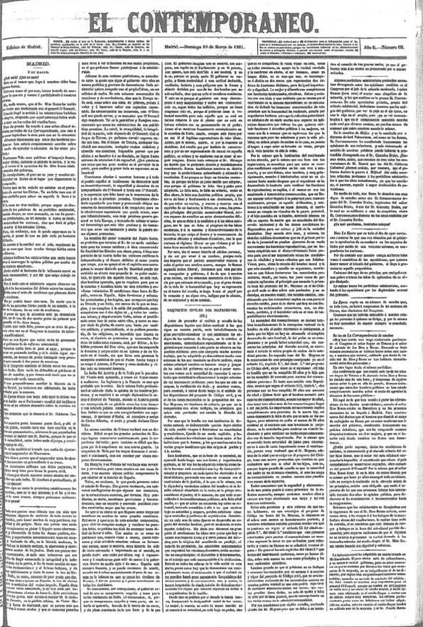 - Título: El Contemporáneo. Año II, núm. 68, domingo 10 de marzo de 1861 (en Formato HTML)