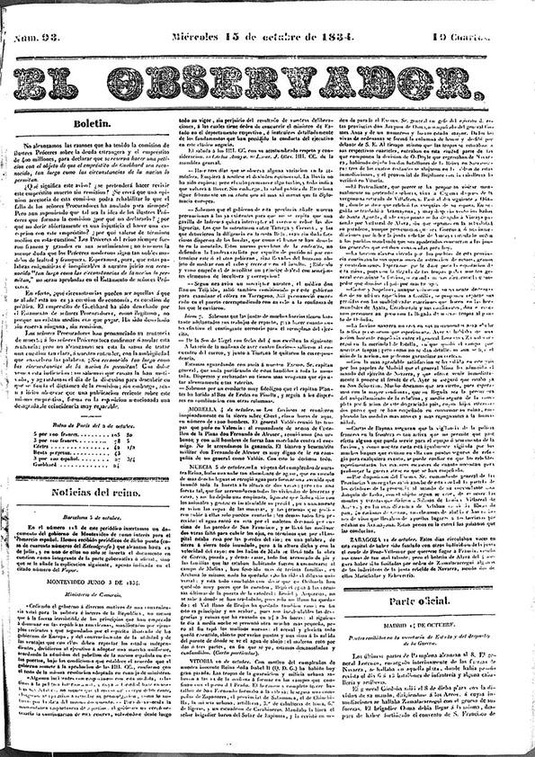- Título: El Observador. Núm. 93 miércoles 15 de octubre de 1834 (Formato PDF)