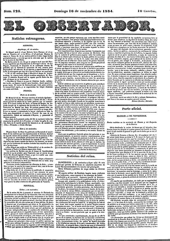 - Título: El Observador. Núm. 125 domingo 16 de noviembre de 1834 (Formato PDF)