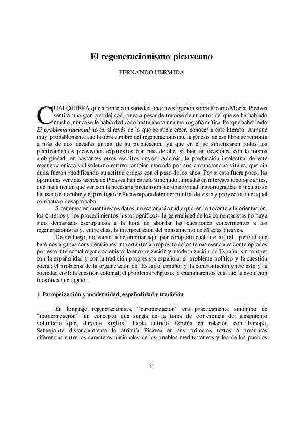 - Título: El regeneracionismo picaveano / Fernando Hermida (Formato PDF)