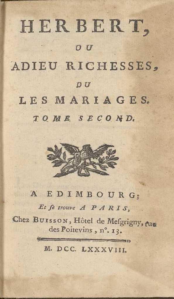 - Título: Herbert, ou Adieu richesses, ou Les mariages. Tome second / [Harriet Lee] (Formato PDF)
