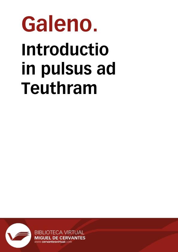 - Título: Introductio in pulsus ad Teuthram / Martino Gregorio interprete.