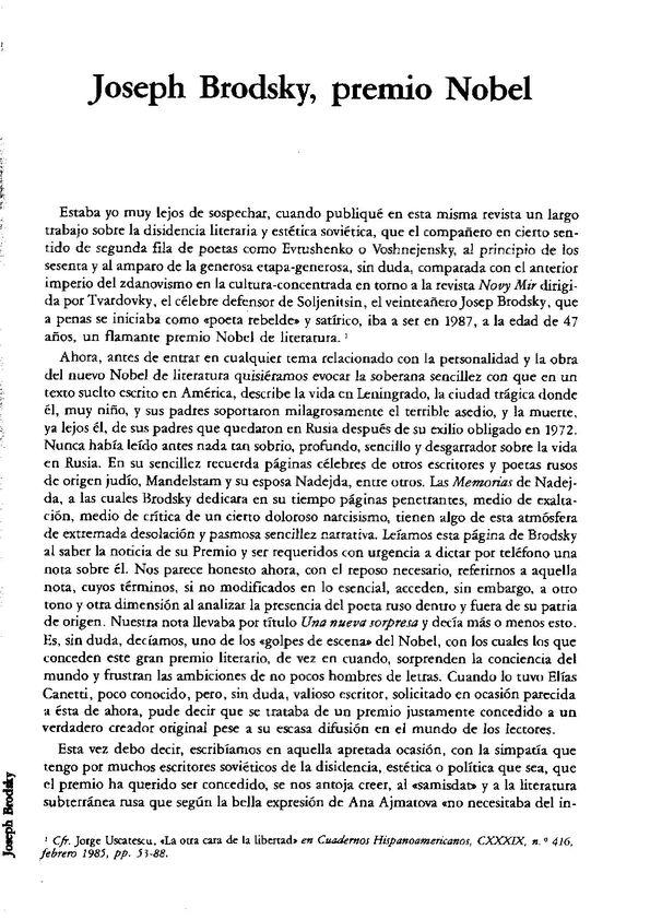 - Título: Joseph Brodsky, premio Nobel / Jorge Uscatescu (Formato PDF)