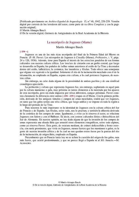 - Título: La necrópolis de Jogasses (Marne) / Martín Almagro Basch (Formato PDF)