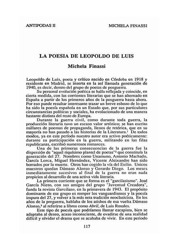 - Título: La poesía de Leopoldo de Luis / Michela Finassi (Formato PDF)
