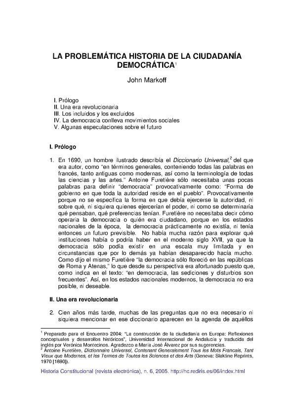 - Título: La problemática histórica de la ciudadanía democrática / John Markoff (Formato PDF)