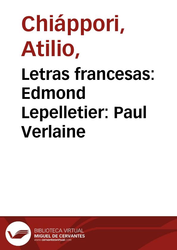- Título: Letras francesas: Edmond Lepelletier: Paul Verlaine / Atilio M. Chiappori
