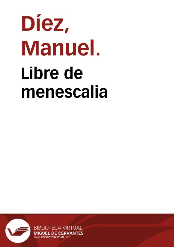 - Títol: Libre de menescalia / Tractat fet per lo Magnifich mossen Manuel dieç ...; Lo qual tractat es profitos e molt necessari per qualseuol caualler ho gentil home ho per qualseuol altra persona que te cauall ho mula ho qualseuol altre animal ...