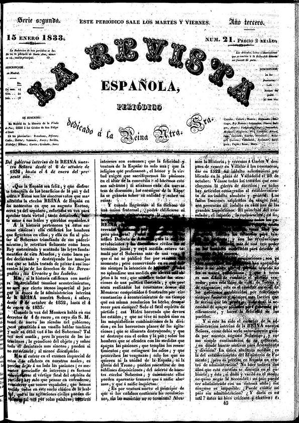 - Título: La Revista española : periódico dedicado a la Reina Ntra. Sra. Núm. 21, 15 de enero de 1833 (Formato PDF)