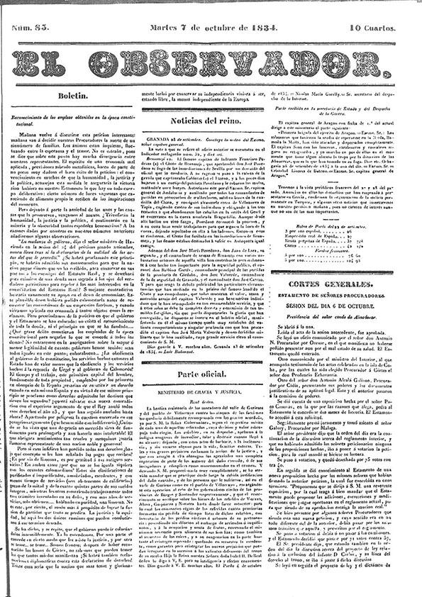 - Título: El Observador. Núm. 83 martes 7 de octubre de 1834 (Formato PDF)