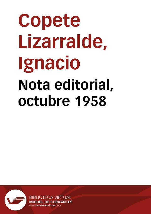 - Título: Nota editorial, octubre 1958