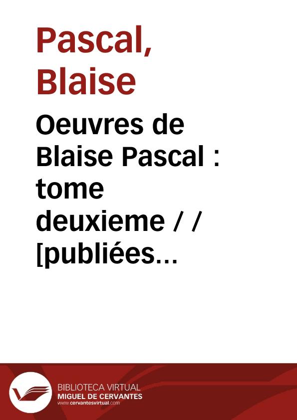 Oeuvres de Blaise Pascal : tome deuxieme / /[publiées par Bossut]