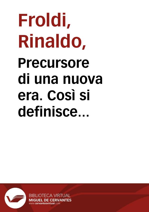 - Título: Precursore di una nuova era. Così si definisce Salvador Dalì, parlando della nueva pittura mistico-nucleare / di Rinaldo Froldi (en Formato HTML)