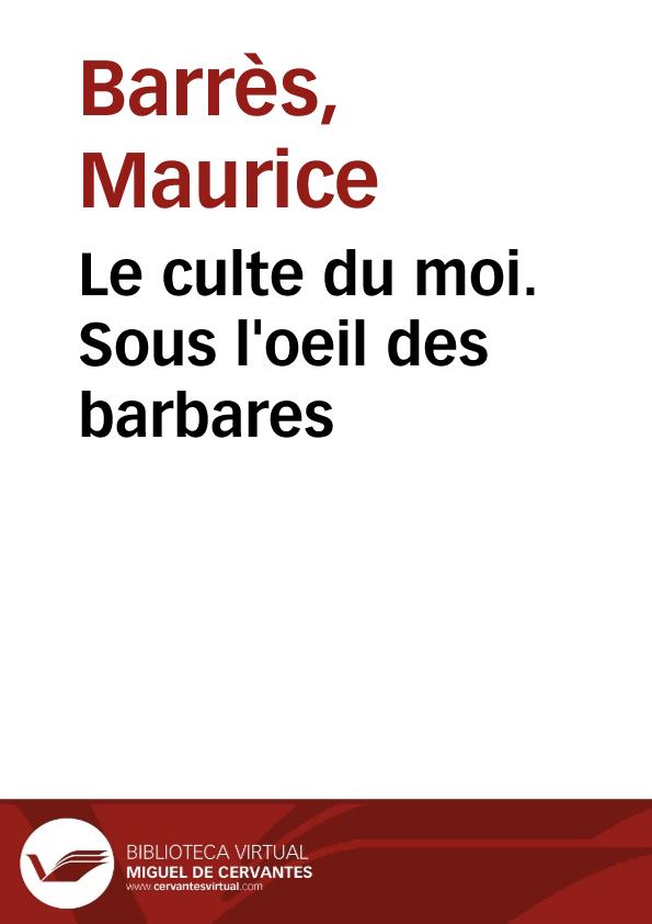 - Título: Le culte du moi. Sous l'oeil des barbares / Barrès Maurice