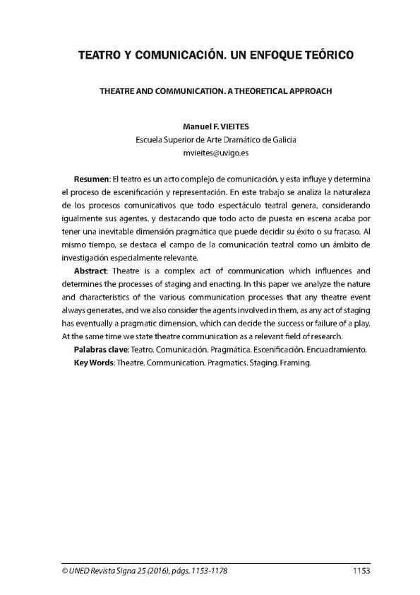 - Título: Teatro y comunicación. Un enfoque teórico / Manuel F. Vieites (Formato PDF)