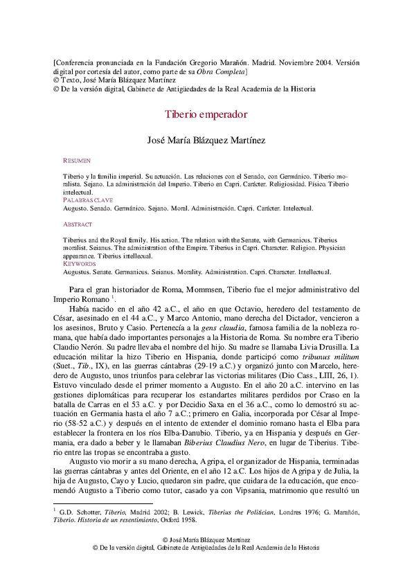 - Título: Tiberio emperador / José María Blázquez Martínez (Formato PDF)