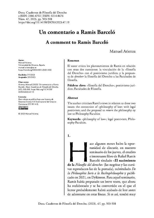 - Título: Un comentario a Ramis Barceló / Manuel Atienza (Formato PDF)
