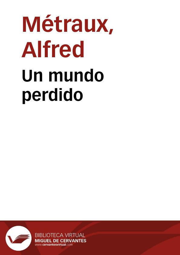 - Título: Un mundo perdido / Alfred Metraux