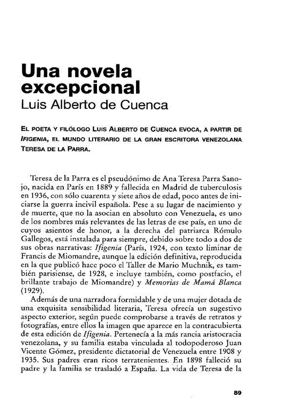 - Título: Una novela excepcional / Luis Alberto de Cuenca (Formato PDF)