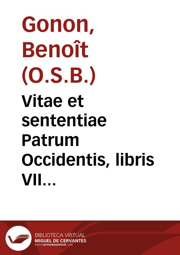 Vitae et sententiae Patrum Occidentis, libris VII digestae... / opera & studio Benedicti Gononi Burgensis...; accesserunt insuper ad calcem insignium quorumdam Eremitarum Orientis vitae