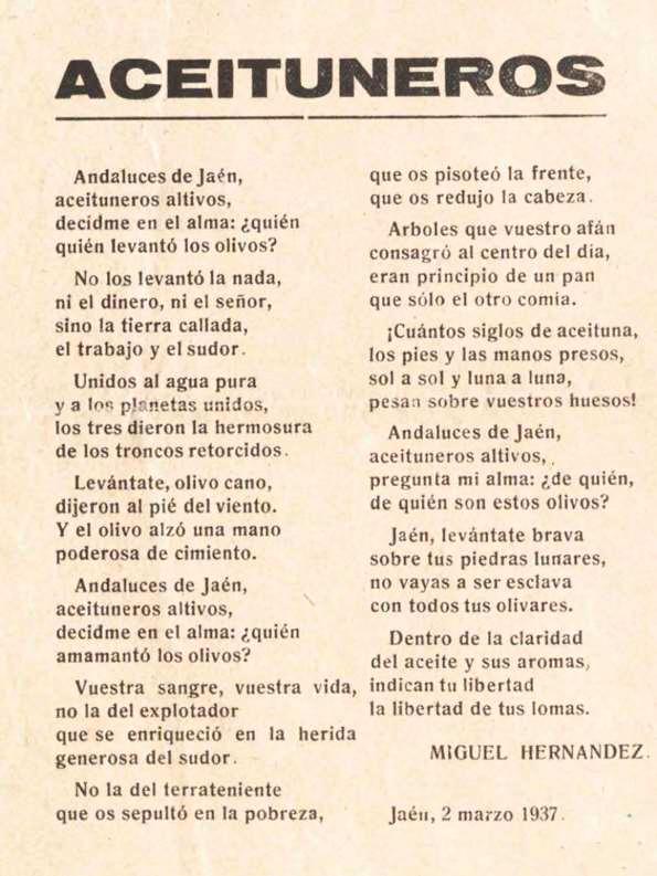 - Título: Aceituneros / Miguel Hernández (en Formato HTML)