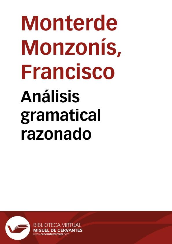 - Título: Análisis gramatical razonado / errores de nota, refutados por Francisco Monterde Monzonís
