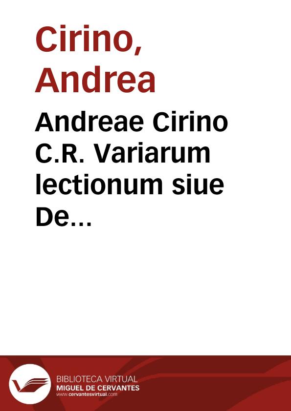Andreae Cirino C.R. Variarum lectionum siue De venatione heroum libri duo