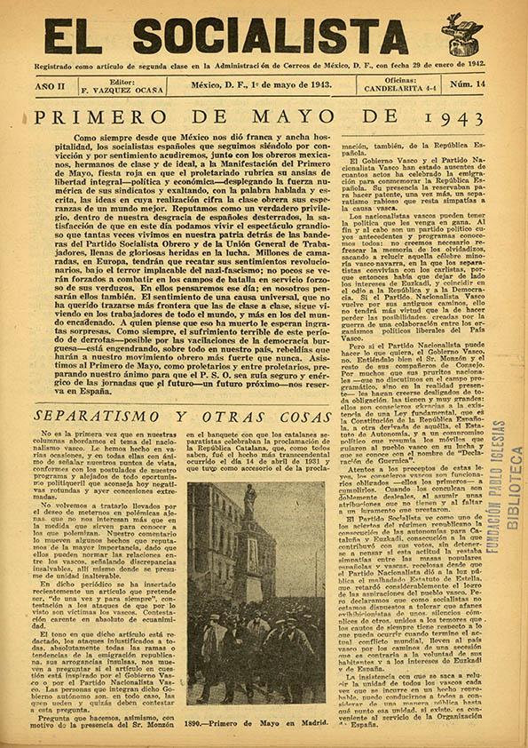 - Título: El Socialista (México D. F.). Año II, núm. 14, 1 de mayo de 1943 (Formato PDF)