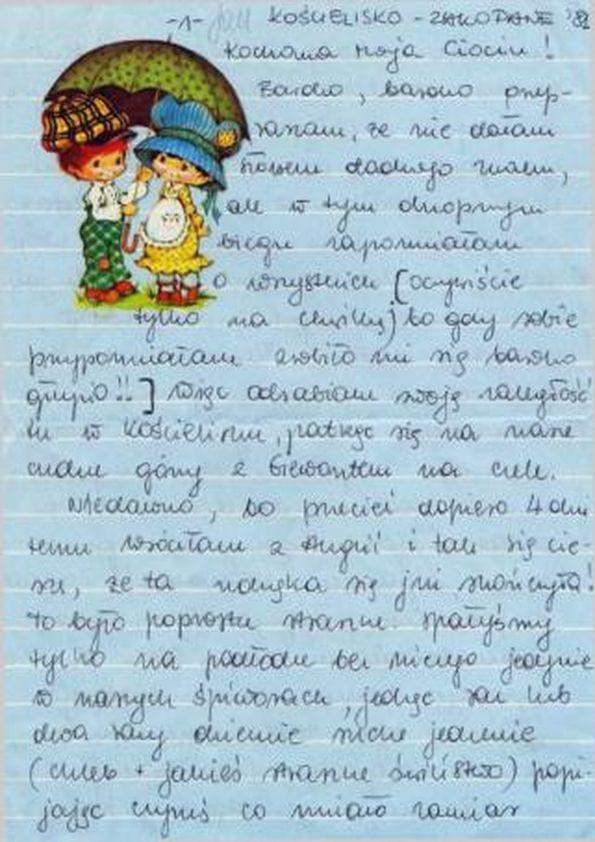 Carta dirigida a Aniela Rubinstein. Koscielisko