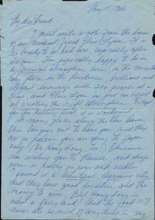 Carta dirigida a Arthur Rubinstein. Ceylan, 15-05-1966