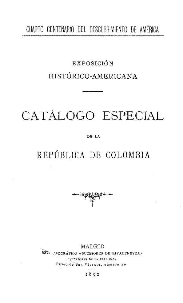 Catálogo especial de la República de Colombia