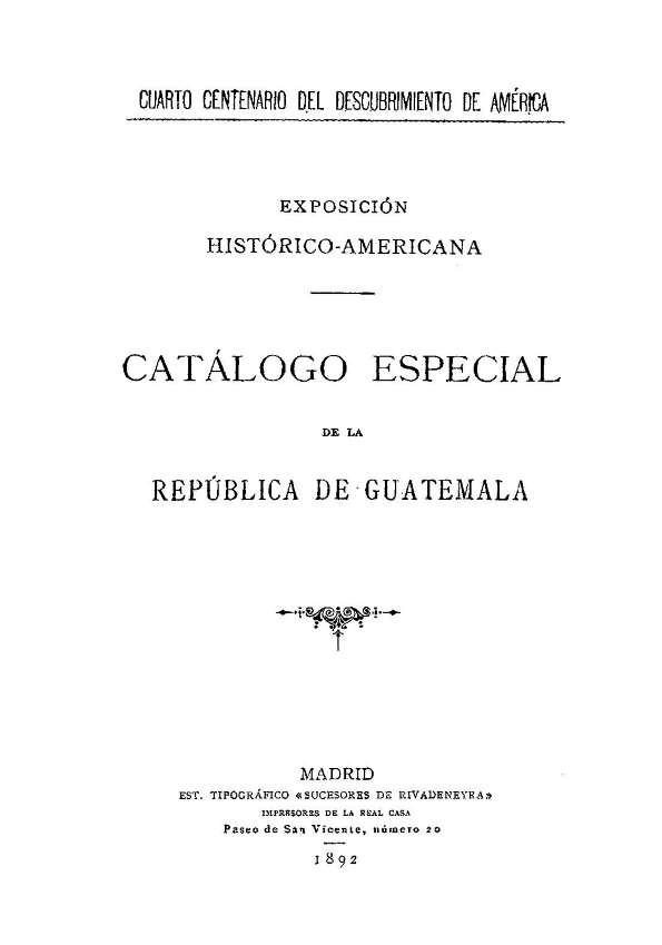 - Título: Catálogo especial de la República de Guatemala / Exposición Histórico-Americana (1892. Madrid) (Formato PDF)
