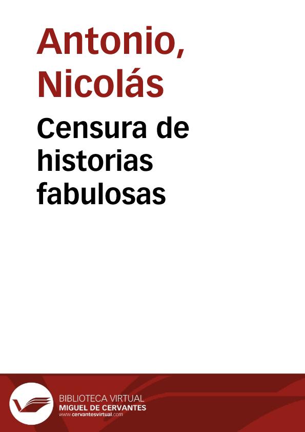 Censura de historias fabulosas / obra posthuma de Don Nicolas Antonio. Van añadidas algunas cartas del mismo autor, i de otros eruditos; publica estas obras don Gregorio Mayàns i Siscar, autor de la Vida de Don Nicolas Antonio