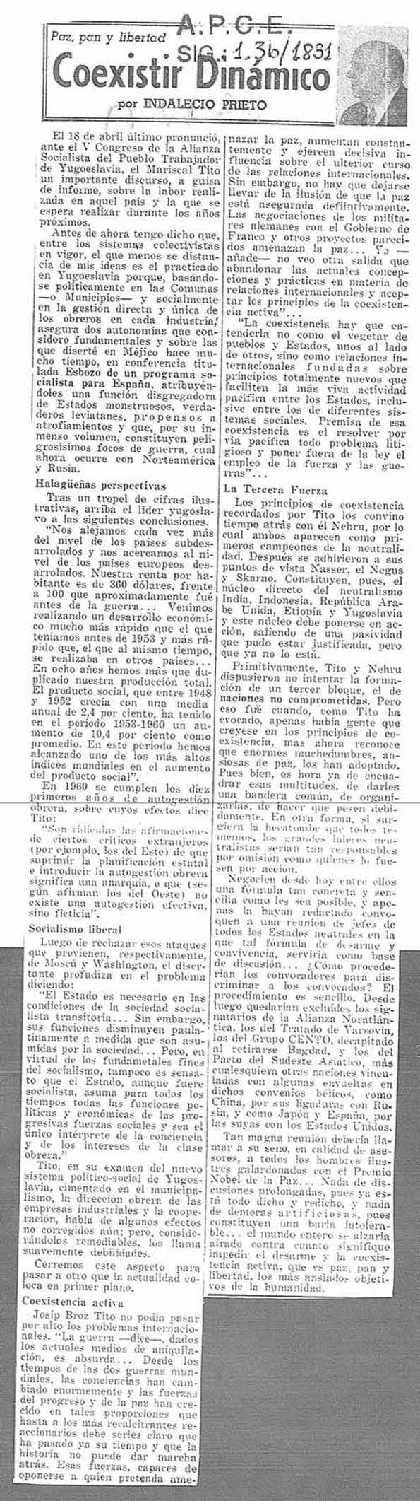 Coexistir dinámico. Tito / Indalecio Prieto