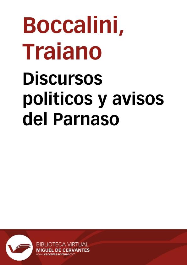 Discursos politicos y avisos del Parnaso Enlace externoen Fondo Antiguo de la Universidad de Salamanca