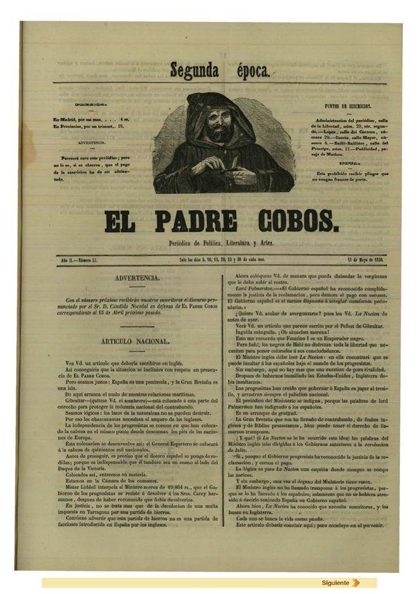 - Título: El padre Cobos. Año II, Número LI, 15 de mayo de 1856 (Formato PDF)