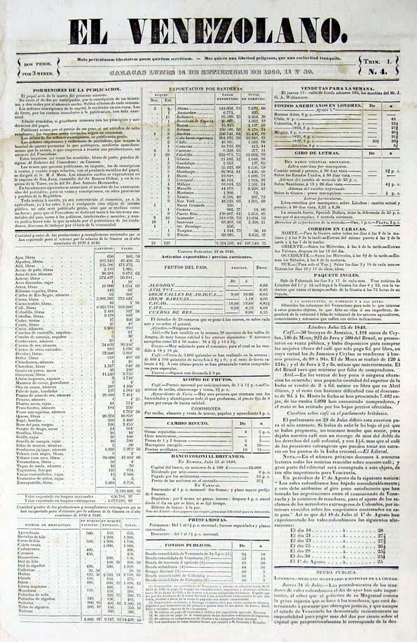 - Título: El Venezolano. Núm. 4, lunes 14 de setiembre de 1840 (en Formato HTML)