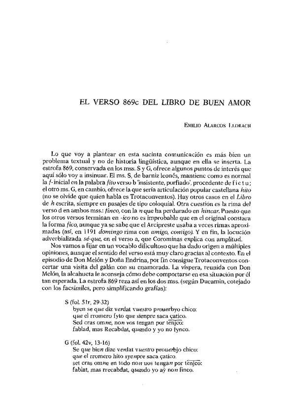 - Título: El verso 869c del "Libro de Buen Amor" / Emilio Alarcos Llorach (Formato PDF)