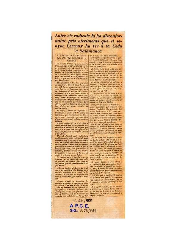 - Título: Entre els radicals hi ha disconformitat pels oferiments que el senyor Lerroux ha fet a la Ceda a Salamanca (Formato PDF)